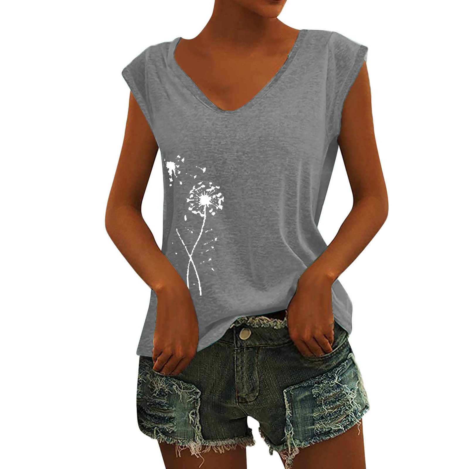 Short Sleeve T Shirts Clothing Woman T-Shirt Casual Black Clothing Top Women's Floral Pattern for Women Crop Tops Shirt Shirts Top Women's Summer Tank Top 3-grey L