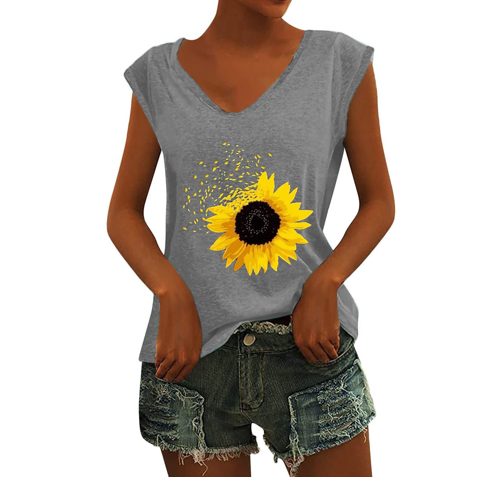 Short Sleeve T Shirts Clothing Woman T-Shirt Casual Black Clothing Top Women's Floral Pattern for Women Crop Tops Shirt Shirts Top Women's Summer Tank Top 5-grey L