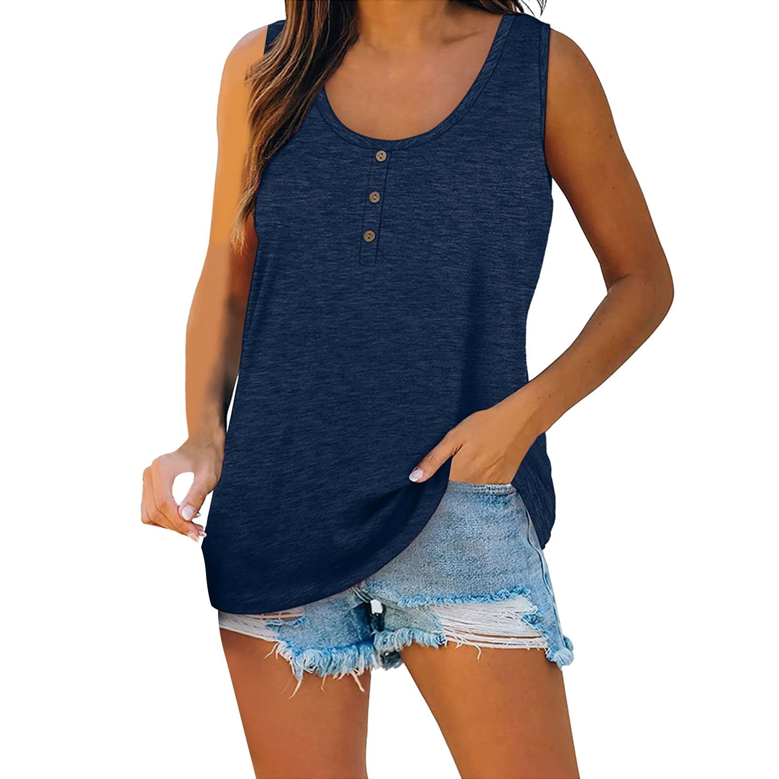 Women's Henley Tank Top Scoop Neck Sleeveless Tunic Shirts Soft Button Down Summer Top Women's Loose 1 x top