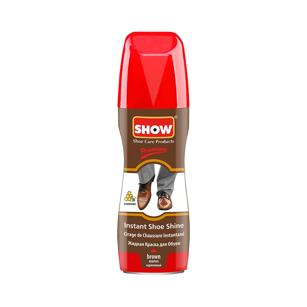 SHOW Instant Leather Shoe Shine Liquid for Shoe Boots Bags- Unisex 75ml Bottle with Sponge for Instant Leather Colour Nourish and Condition - Leather Care Products 1 Unit Brown