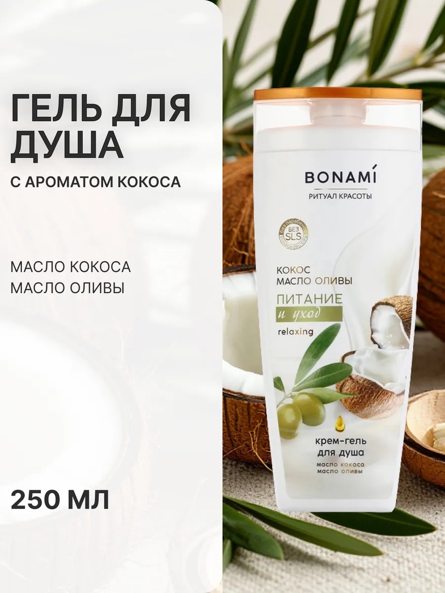 Гель для душа женский 250 мл аромат оливы и кокоса