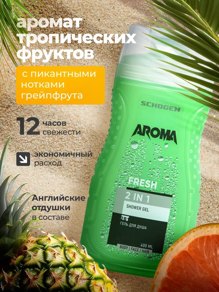 Парфюмированный гель для душа Aroma - это уникальное средство для принятия водных процедур,которое благотворно воздействует на вашу кожу и волосы. Увлажняющий за счет обогащения натуральными компонентами, а пена, которая формируется при вспенивании, помогают увлажнить и успокоить кожу после душа или ванны. Насыщенный аромат, используемый в этом средстве для мытья, состоит из английских душистых компонентов, обладает благородным звучанием свежих сочных тропических фруктов и грейпфрута, с присущей горечью цитрусовой цедры, освежает и способен зарядить хорошим настроением и бодростью. Большой объем флакона 400 мл. позволит вам наслаждаться его парфюмированными нотами в течение длительного времени. Удобный формат с дозатором делает использование флакона максимально простым и удобным. Он хорошо пенится, создавая мягкую обволакивающую пену, которая заботится о вас. Ароматизированный гель-парфюм подходит как для мужчин, так и для женщин, благодаря своему универсальному аромату. Он не только препятствует появлению перхоти, но и обеспечивает увлажнение кожи после душа или ванны. Shower gel отлично подходит для женского и мужского тела и волос, делая уходэффективным и приятным. Попробуйте и получите радость использования такого замечательного продукта уходовойкосметики бренда Schogen. Сделайте процесс умывания более желанным благодаря этому современному и вкусно пахнущему гелю.