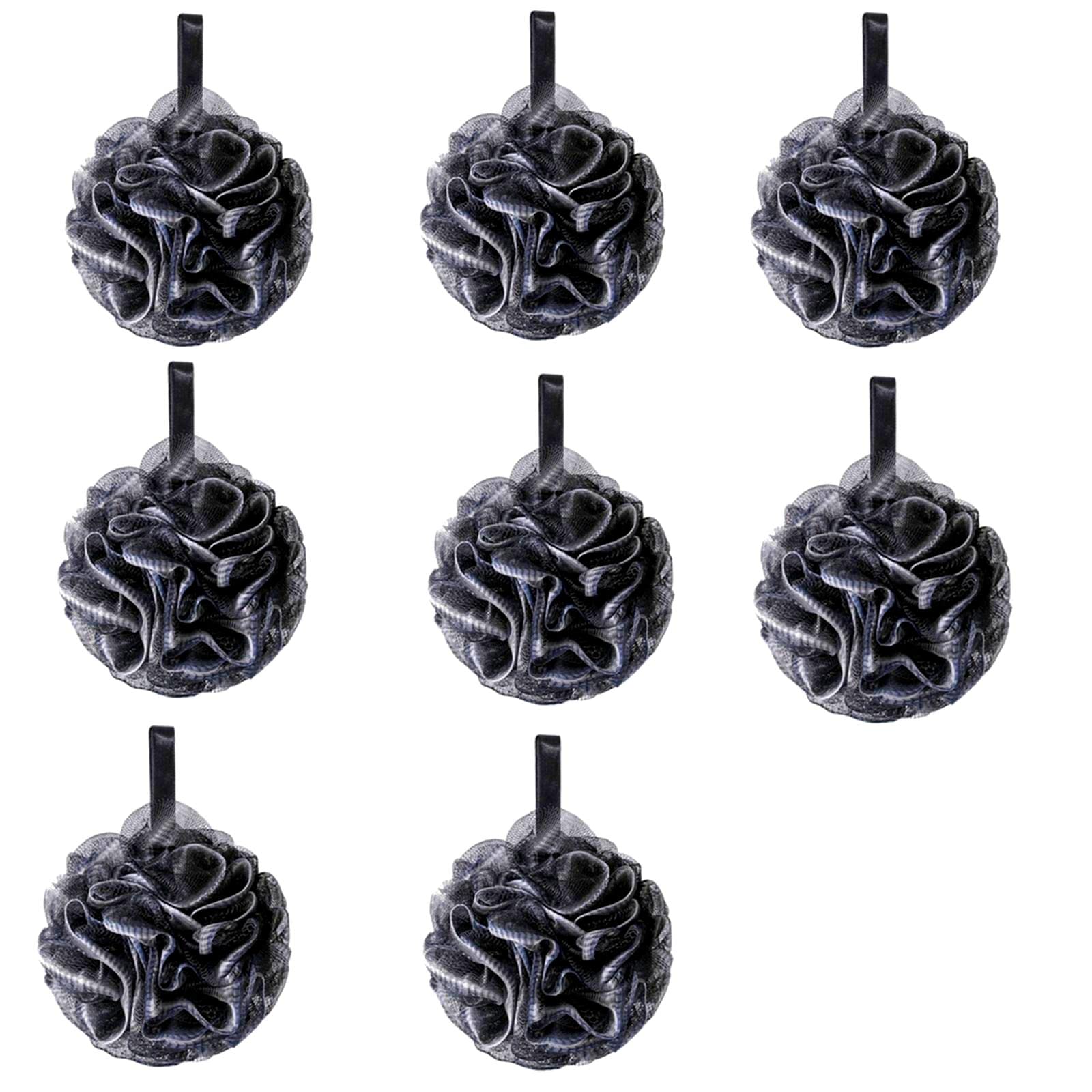 Shower Puff 8 Pack Black, Bath Sponge Shower Loofahs Pouf Ball, Nature Bamboo Charcoal Mesh Bulk Puffs Large, Exfoliating Body Scrubber for Man