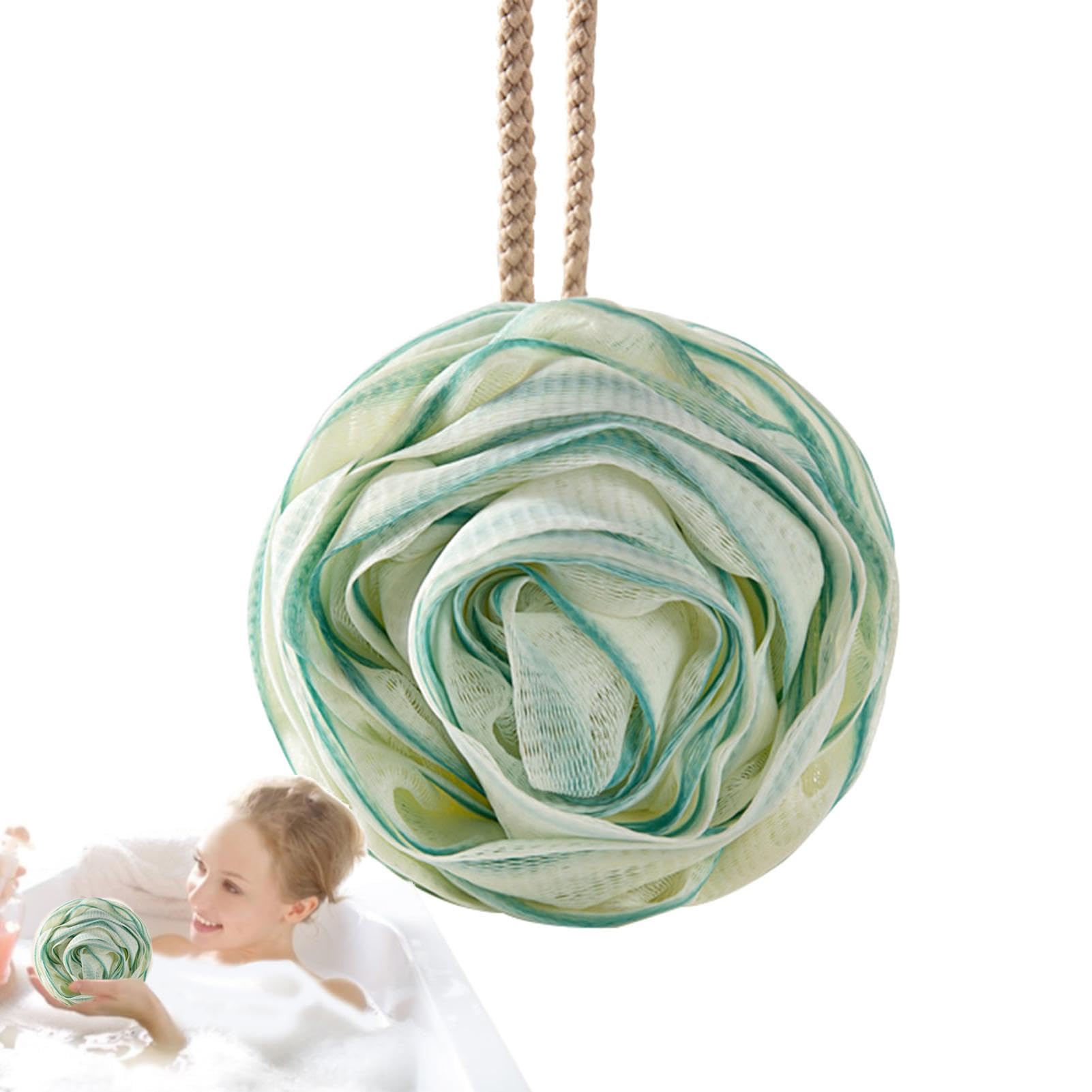 Shower Sponges for Body | Large Rose Bath Sponge Women & Men Skin Friendly Body Scrubber Soft Shower Balls with Lanyard for Home Green
