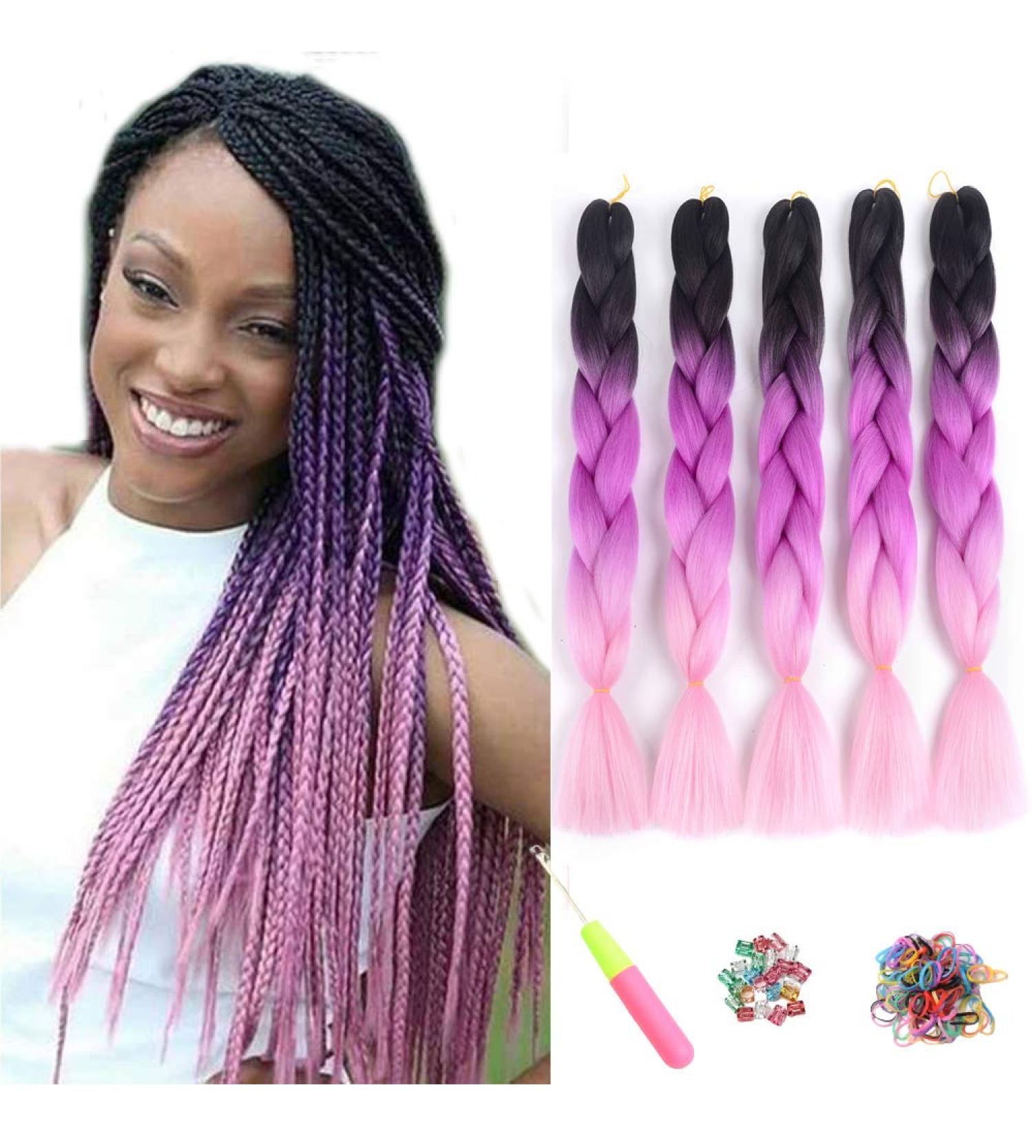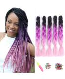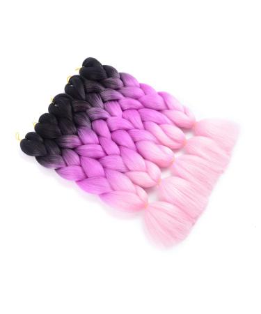 ShowJarlly Jumbo Braid Kunsthaar Haar, Ombre Braid Extension, 24 Zoll Kanekalon Flechten Extensions 5 Stücke Für Crochet Twist Flechten Haar Box Braid Zum Einflechten Zöpfe Schwarz Lila Rot Hellrosa 61cm-24zoll(5er Pack) Schwarz Lila Rot Hellrosa