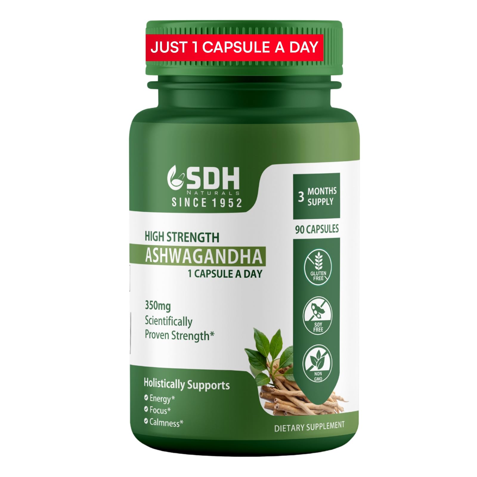 FROM SDH (Since 1952) - TRADITIONAL ROOTS VIA SCIENTIFIC ROUTES - Leading in R D, SDH has produced 400 products blending modern science and Ayurveda. Trusted by 80,000 doctors in India, SDH is poised for global expansion. PURE, CLEAN VEGAN ASHWAGANDHA— NO NASTY STUFF - Manufactured in a GMP-certified facility, our Ashwagandha is vegan, non-GMO, gluten soy free — delivering purity, potency, and results you can trust. POWERFUL ADAPTOGEN SUPPORTING CALMNESS, ENERGY FOCUS - Helps promote calmness, support steady energy levels and sharper focus — a perfect daily support for both men and women to stay balanced and energized. AQUEOUS EXTRACTION REFINED BY 70 YEARS OF EXPERTISE - Backed by 70 years of herbal expertise, our Ashwagandha is purified through advanced aqueous extraction — free from harsh solvents, delivering better purity, and results. JUST 1 CAPSULE A DAY, FULL 3 MONTHS SUPPLY - High Strength Ashwagandha with proprietary extraction delivers maximum potency. Just 1 capsule daily for full benefits — 90 capsules per bottle means great results great value!.