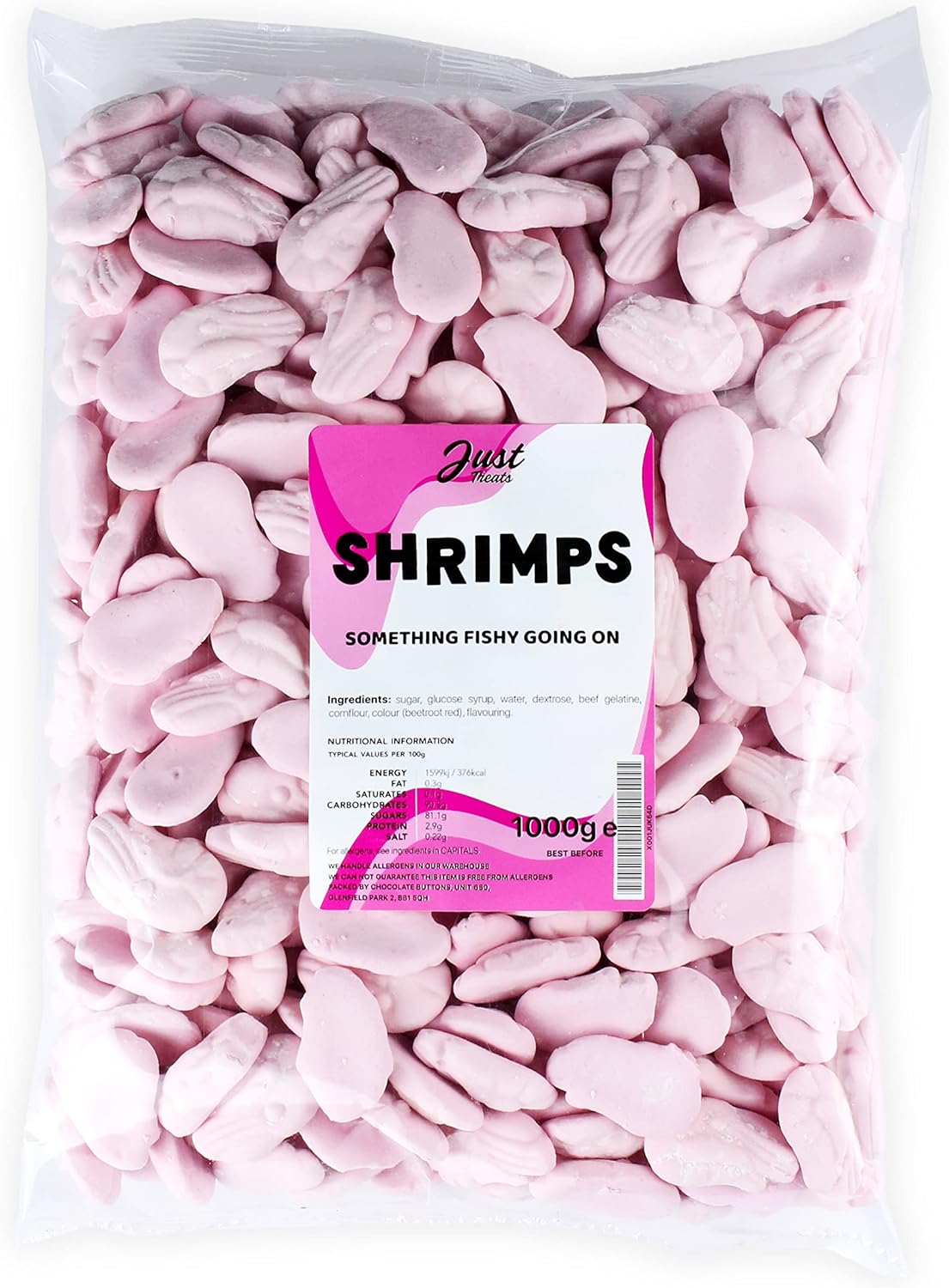 Just Treat Share Bag contains 1 Kilo of the finest Foam Shrimps.