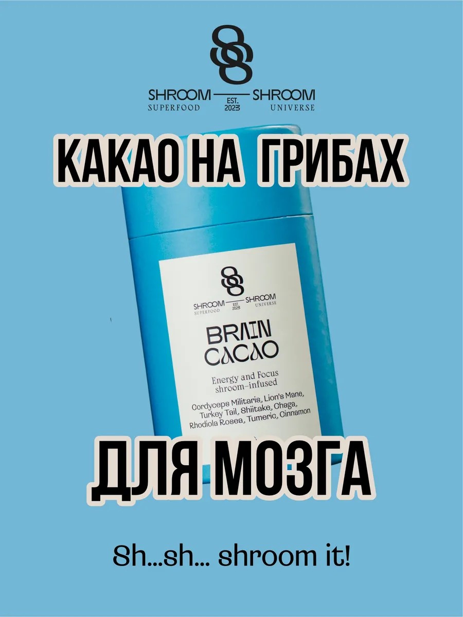 Хотите получить максимальный заряд бодрости и энергии с утра? Натуральное какао на основе грибов от SHROOM SHROOM - это оригинальный напиток, который подарит вам целый комплекс полезных витаминов и микроэлементов, обеспечит хорошее самочувствие и отличное настроение на весь день! Без кофеина, без са хара- природный запуск внутренних ресурсов организма.