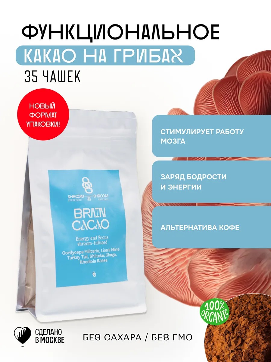 Хотите получить максимальный заряд бодрости и энергии с утра? Натуральное какао на основе грибов от SHROOM SHROOM - это оригинальный напиток, который подарит вам целый комплекс полезных витаминов и микроэлементов, обеспечит хорошее самочувствие и отличное настроение на весь день!