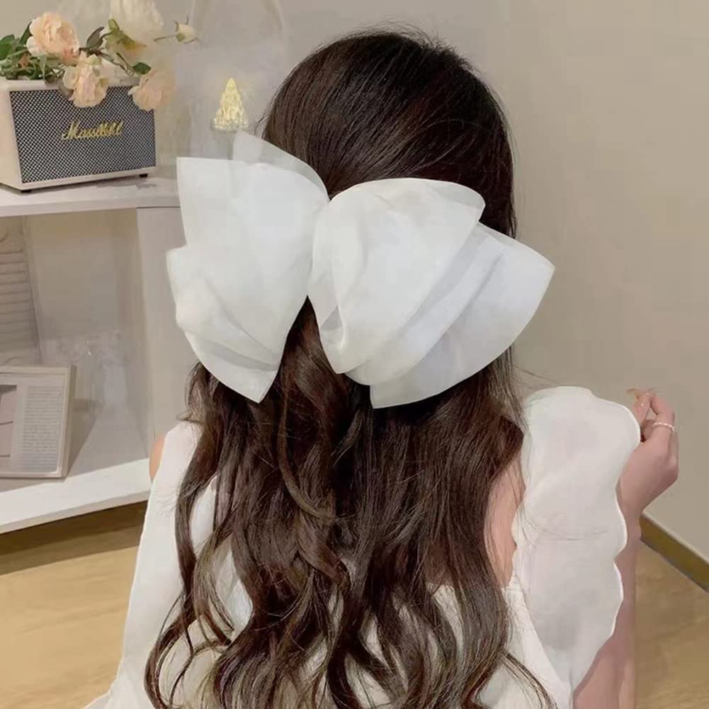 SHTGOI Women's Hair Bows Clip Chiffon Tulle Bows Hair Clips Bow Hair Clip Plain Hair Pins Vintage Elegant French Barrettes Hair Styling Accessories White