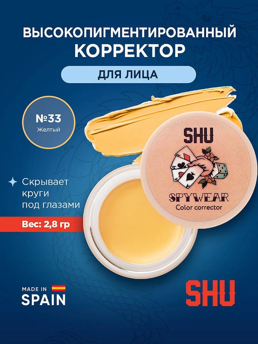 SHU Корректор для лица высокопигментированный Spywear, тон 33 желтый.