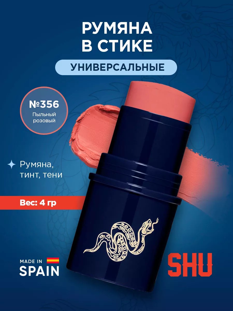SHU Румяна в стике Cheeky Devil, тон 356 пыльный розовый (персиково-розовый).