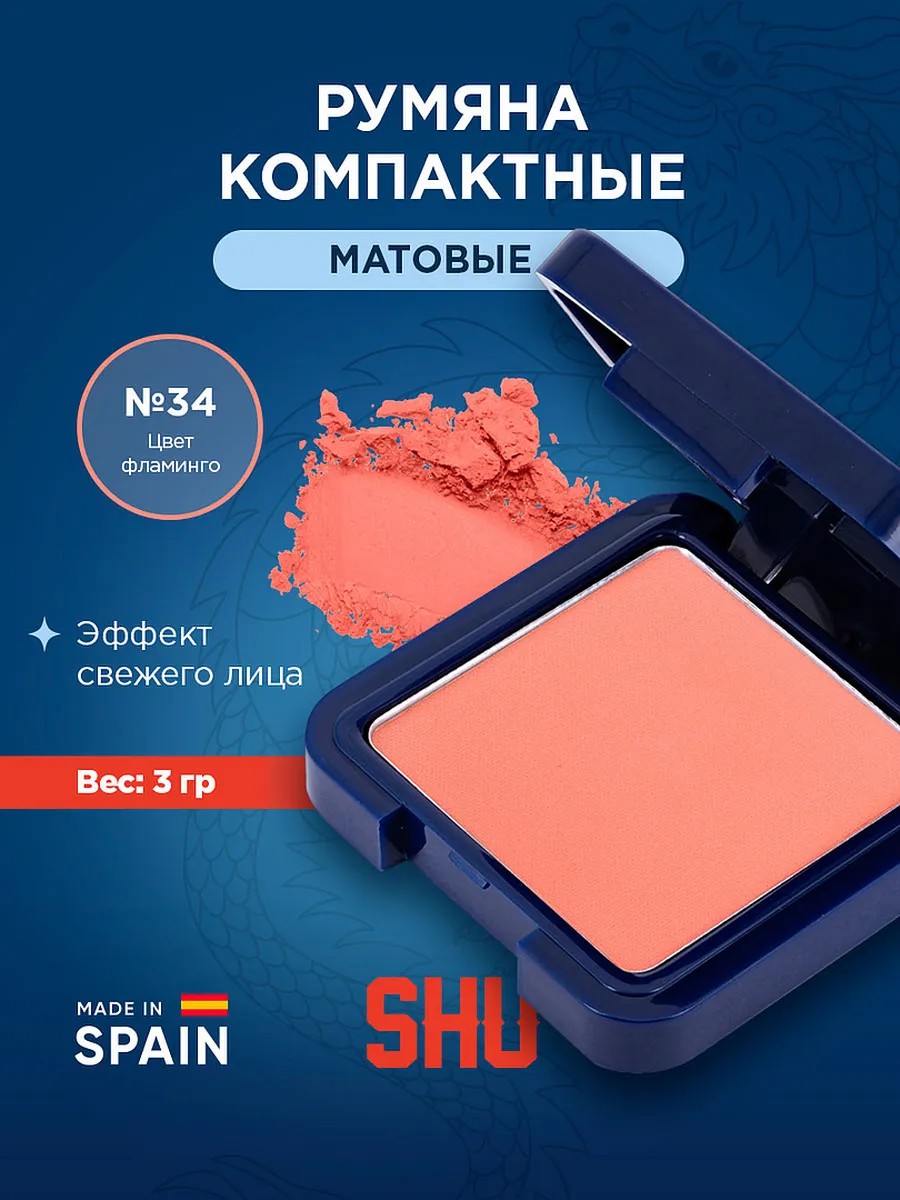 SHU Румяна для лица сухие компактные, 34 розовый персик