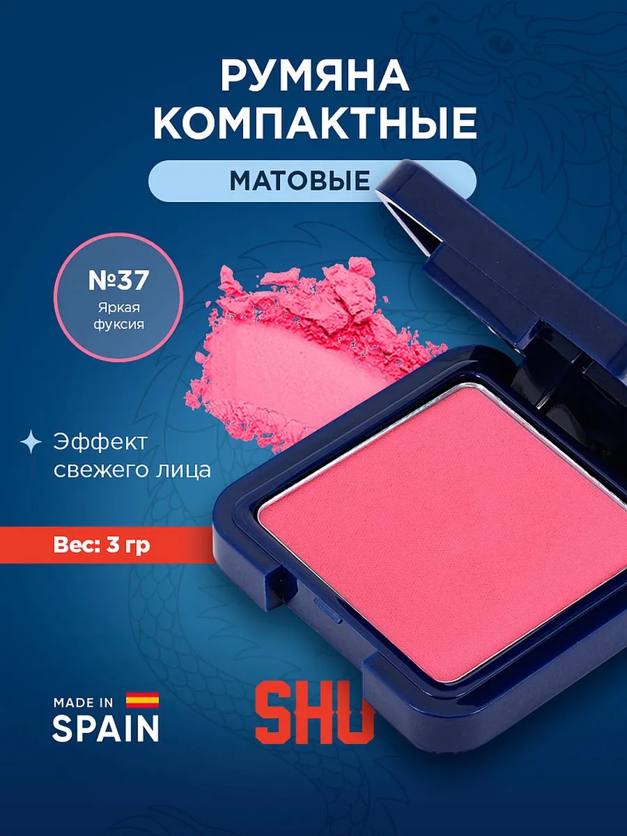 SHU Румяна для лица сухие компактные с зеркалом, 37 фуксия