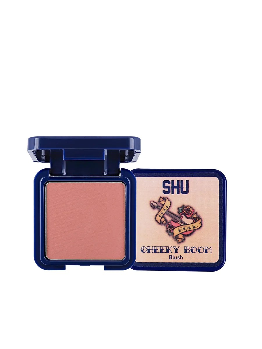 Shu Cheeky Boom 38 Compact Blush with a matte and satin finish has a soft, finely dispersed texture that glides on smoothly and blends easily, creating a weightless finish. This matte compact blush lasts beautifully throughout the day. Use it as a contouring tool for cheekbones, perfect facial contours, and defined highlights. This dry blush distributes evenly without clogging pores or creasing.