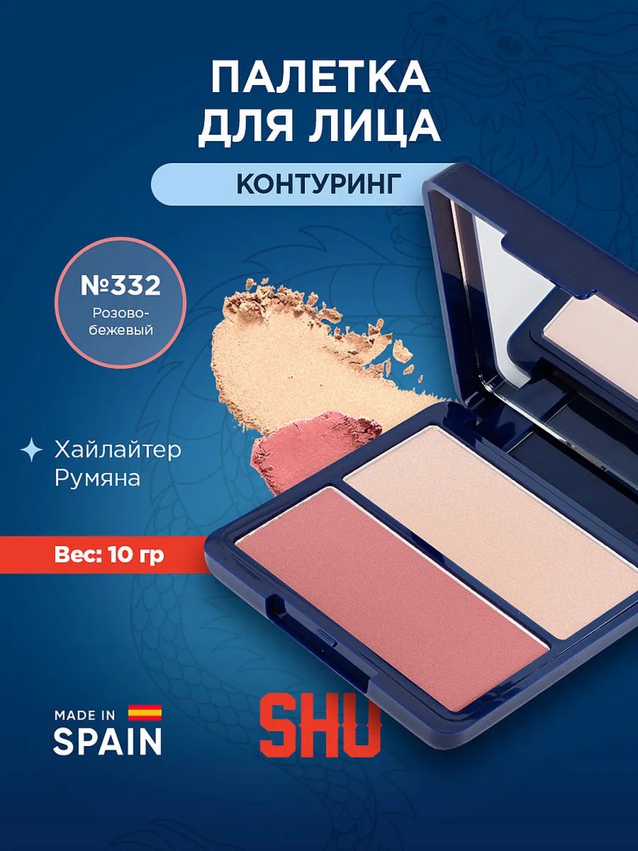 SHU Палетка для лица сухая румяна хайлайтер, 332 розово-бежевый