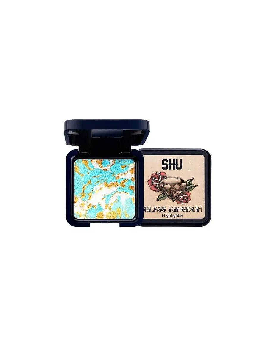 To liven up your makeup, SHU recommends the compact Glass Kingdom Highlighter.