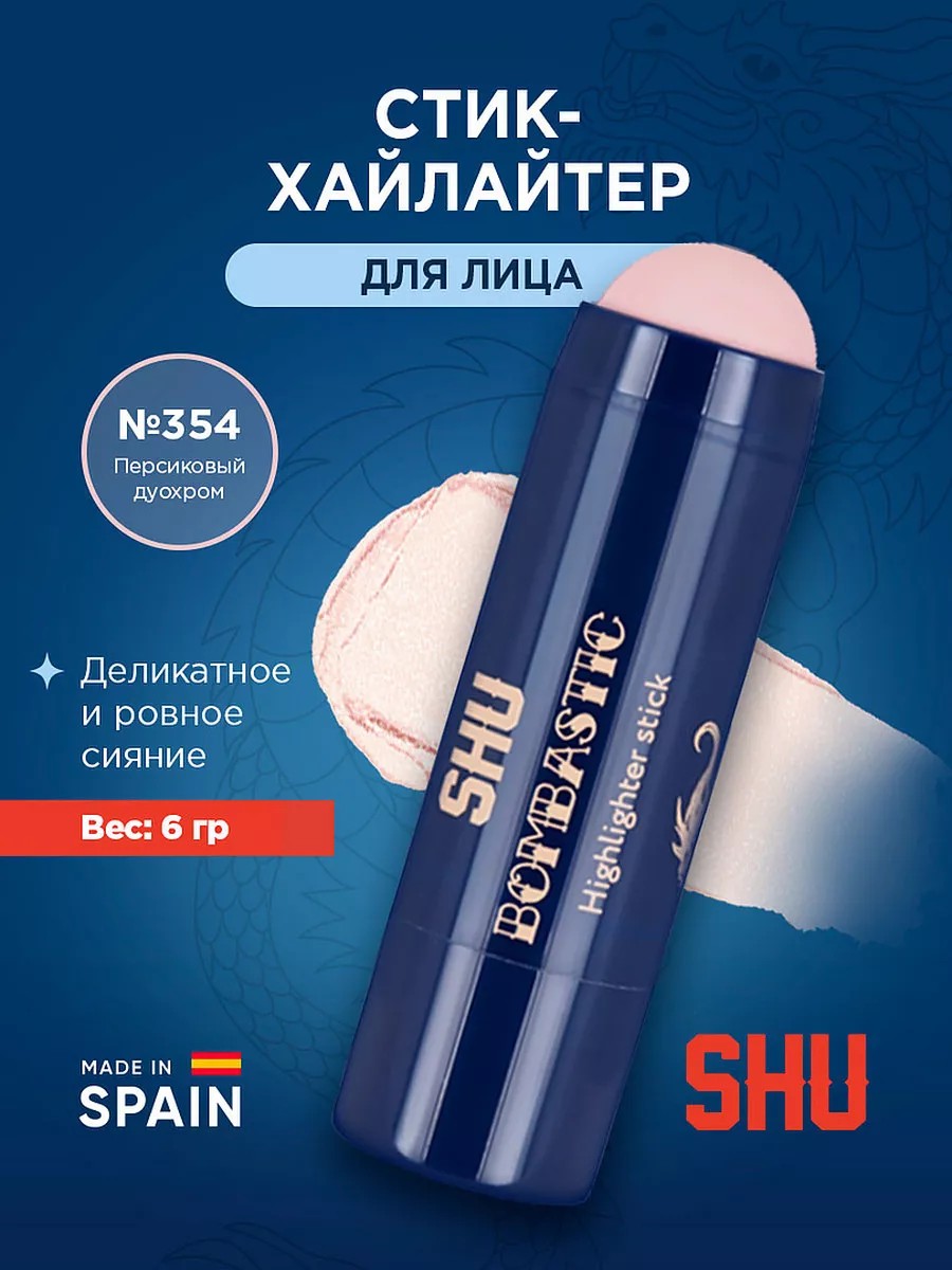 SHU Хайлайтер для лица в стике Bombastic, тон 354 персик дуохром