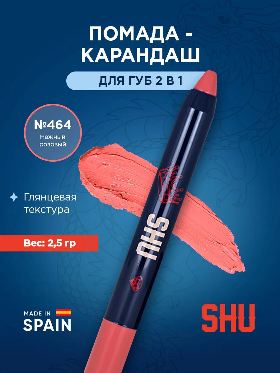 SHU Помада карандаш для губ глянцевая № 464 нежный розовый