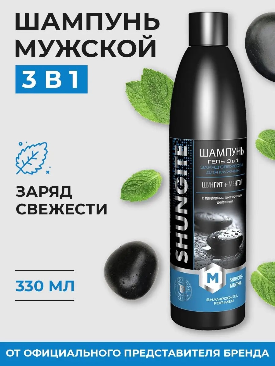 Шунгит Шампунь мужской для жирных волос 3 в 1 гель для душа
