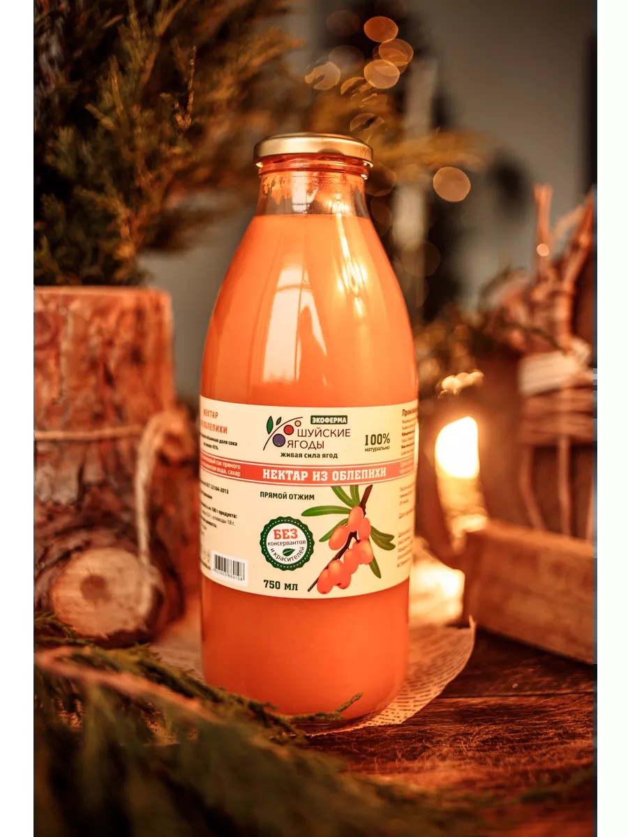 Сок облепихи от экофермы "Шуйские ягоды" производится с низким содержанием сахара, из мякоти облепихи (без косточек), выращенной на собственных плантациях в Ивановской области, и имеет насыщенный вкус и аромат натуральных ягод облепихи. Этот полезный напиток идеально подходит для людей ограничивающих количество углеводов, придерживающихся правильного питания (ПП), для похудения или снижения веса без вреда для здоровья. Наш ягодный нектар производится без консервантов, красителей и ароматизаторов, а бережная пастеризация позволяет сохранить витамины, содержащиеся в экологически чистой облепихе, выращенной на наших плантациях. При этом он не требует особых условий хранения, срок годности нашего напитка - 18 месяцев. Облепиху в народе называют "ягодой здоровья". Она укрепляет иммунитет, благоприятно воздействует на сердце, ускоряет выздоровление при простудных заболеваниях, помогает справиться со стрессом, эмоциональными нагрузками. Это настоящий природный поливитамин с содержанием ценного облепихового масла. Мы не добавляем в нектар стабилизаторы, поэтому он может расслаиваться в процессе хранения, допускается выпадение естественного осадка, это нормально для натурального продукта. Облепиховое масло образует небольшие хлопья и чаще располагается в верхнем слое напитка за счет меньшей плотности. Рекомендуем взболтать нектар перед употреблением, чтобы сделать напиток более однородным. Крафтовые продукты ручной работы от Шуйских ягод станут прекрасным подарком на любой праздник и полезным угощением для взрослых и детей!