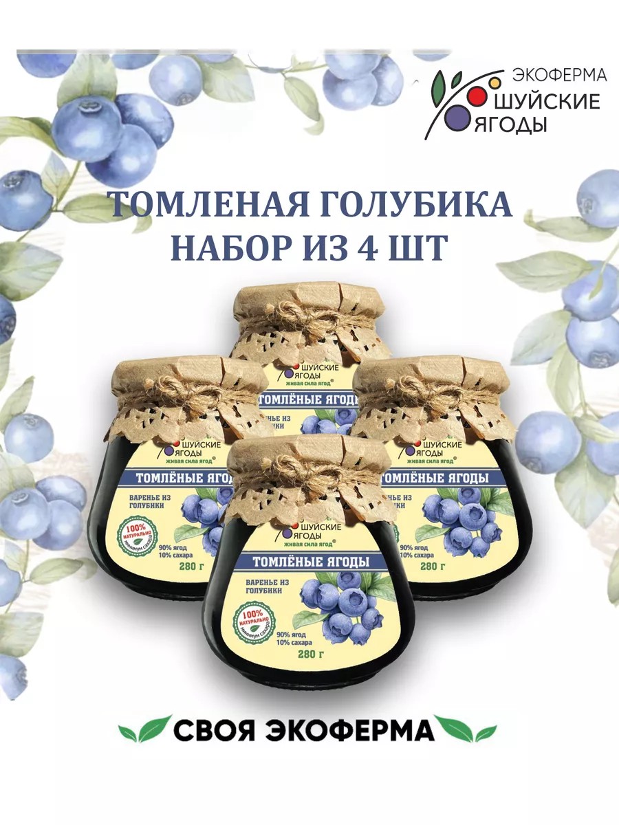 Шуйские ягоды Набор 4 банки натурального варенья из голубики