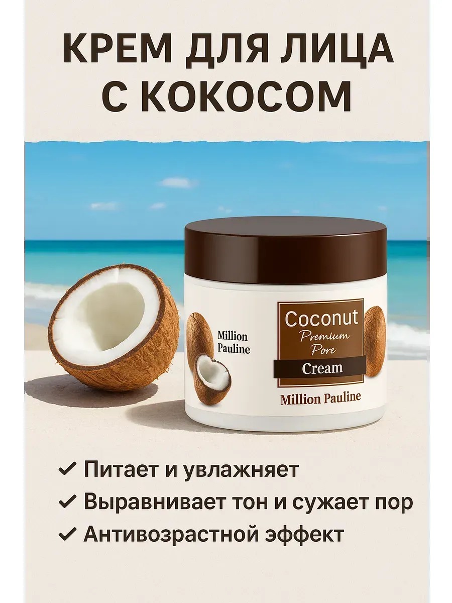 | Полное наименование товара | Крем для лица с кокосом Million Pauline — питание, сужение пор и сияние кожи |