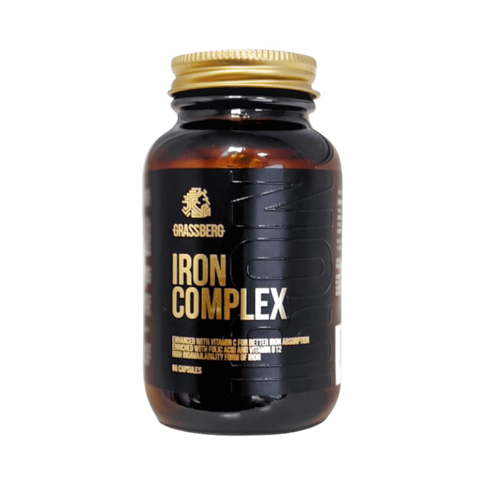 Grasberg's iron complex is a complex of vitamins and minerals that meets the body's daily need for iron. It contains vitamin C, which facilitates the absorption of iron in the body, and is rich in folic acid and vitamin B12. Iron is essential for the normal functioning of the body and facilitates the formation of hemoglobin, myoglobin and other important enzymes and catalyzes the exchange of oxygen. It also contains vitamin C, which contributes to the metabolism of folic acid, iron and other elements. Vitamin C cannot be produced by the body itself and must therefore be administered externally. That is why this product is ideal for this and good for the body at the same time. INGREDIENTS rice flour, iron bisglycinate, capsule (gelatin), ascorbic acid (vitamin C), maltodextrin, anti-caking agents (magnesium stearate, silicon dioxide), pteroylmonoglutamic acid (folic acid), cyanocobalamin (vitamin B12) INSTRUCTIONS FOR USE Recommended daily use 1 serving. Take 1 LEGAL DISCLAIMER Food supplements are not a substitute for a balanced and varied diet. See moreTake 1 capsule daily with a large glass of cold water with the main meal. Do not exceed recommended intake. No GMO, Gluten Soy. Supports health. Mineral and vitamin complex.Grassberg Iron Complex (60 caps) Unflavoured - Vitaminen, mineralen gezondheid - Mineralen Unflavoured 60 caps Het ijzercomplex van Grasberg is een complex van vitaminen en mineralen dat voorziet in de dagelijkse behoefte aan ijzer van het lichaam. Het bevat vitamine C, die de opname van ijzer in het lichaam vergemakkelijkt, en is rijk aan foliumzuur en vitamine B12. IJzer is essentieel voor de normale werking van het lichaam en vergemakkelijkt de vorming van hemoglobine, myoglobine en andere belangrijke enzymen en katalyseert de uitwisseling van zuurstof. Het bevat ook vitamine C, die bijdraagt tot het metabolisme van foliumzuur, ijzer en andere elementen. Vitamine C kan niet door het lichaam zelf worden aangemaakt en moet dus extern worden toegediend. Daarom is dit product hiervoor ideaal en tegelijkertijd goed voor het lichaam. INGREDIËNTEN rijstmeel, ijzerbisglycinaat, capsule( gelatine), ascorbinezuur( Vitamine C), maltodextrine, antiklontermiddelen( magnesium stearaat, siliciumdioxide), pteroylmonoglutaminezuur( Foliumzuur), cyanocobalamine( Vitamine B12) GEBRUIKSAANWIJZING Aanbevolen dagelijks gebruik 1 portie. Neem 1 WETTELIJKE DISCLAIMER Voedingssupplementen zijn geen vervanging voor een evenwichtige en gevarieerde voeding. Meer bekijkenNeem dagelijks 1 capsule met een groot glas koud water bij de hoofdmaaltijd. Aanbevolen inname niet overschrijden. Geen GMO, Gluten Soja. Ondersteunt de gezondheid. Mineralen- en vitaminecomplex.