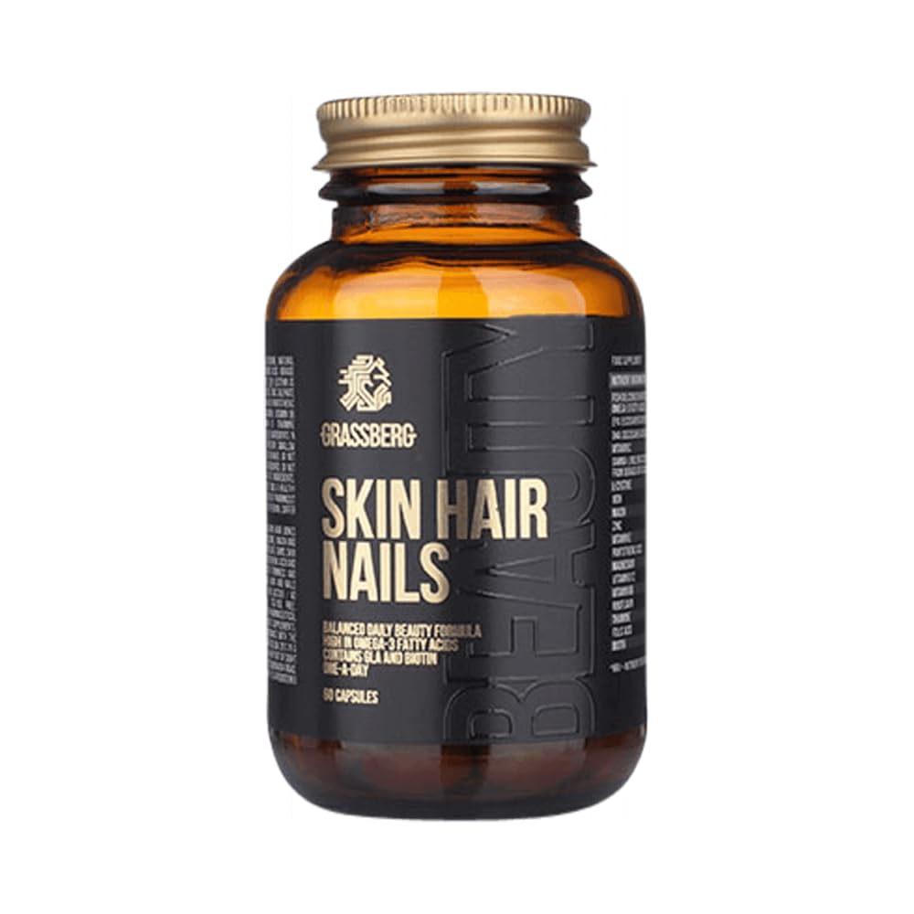 Your physical well-being can easily be improved through healthier skin, hair and nails. Grassbergs Skin Hair Nails provides extra vitamins and minerals that support the body by providing antioxidant protection, among other things, so you can feel young for longer. Your skin has to endure a lot every day and external influences can take a toll. Sensible care and protection are essential to keep it looking and feeling young for a long time. Your hair, on the other hand, is under stress and strain from everyday life and styling. To always have beautiful hair, you must care for it and nourish it with nutrients, for example. A lack of micronutrients can also result in brittle and deformed nails. Skin Hair Nails can help you counteract these processes. INGREDIENTS capsule (gelatin, humectant (glycerol), coloring agent (red iron oxide)), FISH OIL, Vitamin C (ascorbic acid), borage oil (Borago officinalis), L-cystine, iron sulphate, emulsifier (SOY lecithin), Vitamin B3 (nicotinamide), stabilizer (yellow beeswax), zinc sulphate, Vitamin E ( DL-alpha-tocopheryl acetate), Vitamin B5 (Pantothenic acid (calcium D-pantothenate)), magnesium oxide, anti-caking agent (silicon dioxide), Vitamin B12 (cyanocobalamin), Vitamin B6 (pyridoxine INSTRUCTIONS FOR USE Recommended daily use 1 serving. One LEGAL DISCLAIMER Food supplements are not a substitute for a balanced and varied diet. See moreTake one capsule per day in combination with a meal. Supplement with minerals and vitamins. for healthier skin, hair and nails. Provides antioxidant protection.Grassberg Skin Hair Nails (60 Caps) Unflavoured - Vitaminen, mineralen gezondheid - Unflavoured 60 capsules Uw lichamelijk welzijn kan gemakkelijk worden verbeterd door een gezondere huid, haar en nagels. Grassbergs Skin Hair Nails levert extra vitaminen en mineralen die het lichaam ondersteunen door onder meer antioxidantbescherming te bieden, zodat u zich langer jong kunt voelen. Uw huid krijgt elke dag veel te verduren en invloeden van buitenaf kunnen een tol eisen. Verstandige verzorging en bescherming zijn dan ook van essentieel belang om hem er lang jong te laten uitzien en aanvoelen. Uw haar daarentegen staat onder stress en wordt belast door het dagelijkse leven en de styling. Om altijd mooi haar te hebben, moet je het verzorgen en voeden met bijvoorbeeld voedingsstoffen. Een gebrek aan micronutriënten kan ook broze en vervormde nagels tot gevolg hebben. Om deze processen tegen te gaan, kanSkin Hair Nails u helpen. INGREDIËNTEN capsule( gelatine, bevochtigingsmiddel( glycerol), kleurstof( rode ijzeroxide)), VISOLIE, Vitamine C( ascorbinezuur), bernagie-olie( Borago officinalis), L-cystine, ijzersulfaat, emulgator( SOJALECITHINE), Vitamine B3( nicotinamide), stabilisator( gele bijenwas), zinksulfaat, Vitamine E( DL-alfa-tocoferylacetaat), Vitamine B5( Pantotheenzuur( calcium D-pantothenaat)), magnesiumoxide, antiklontermiddel( siliciumdioxide), Vitamine B12( cyanocobalamine), Vitamine B6( pyridoxine GEBRUIKSAANWIJZING Aanbevolen dagelijks gebruik 1 portie. Eén WETTELIJKE DISCLAIMER Voedingssupplementen zijn geen vervanging voor een evenwichtige en gevarieerde voeding. Meer bekijkenNeem één capsule per dag in combinatie met een maaltijd. Aanvullen met mineralen en vitaminen. voor gezondere huid, haar en nagels. Geeft bescherming door antioxidanten.