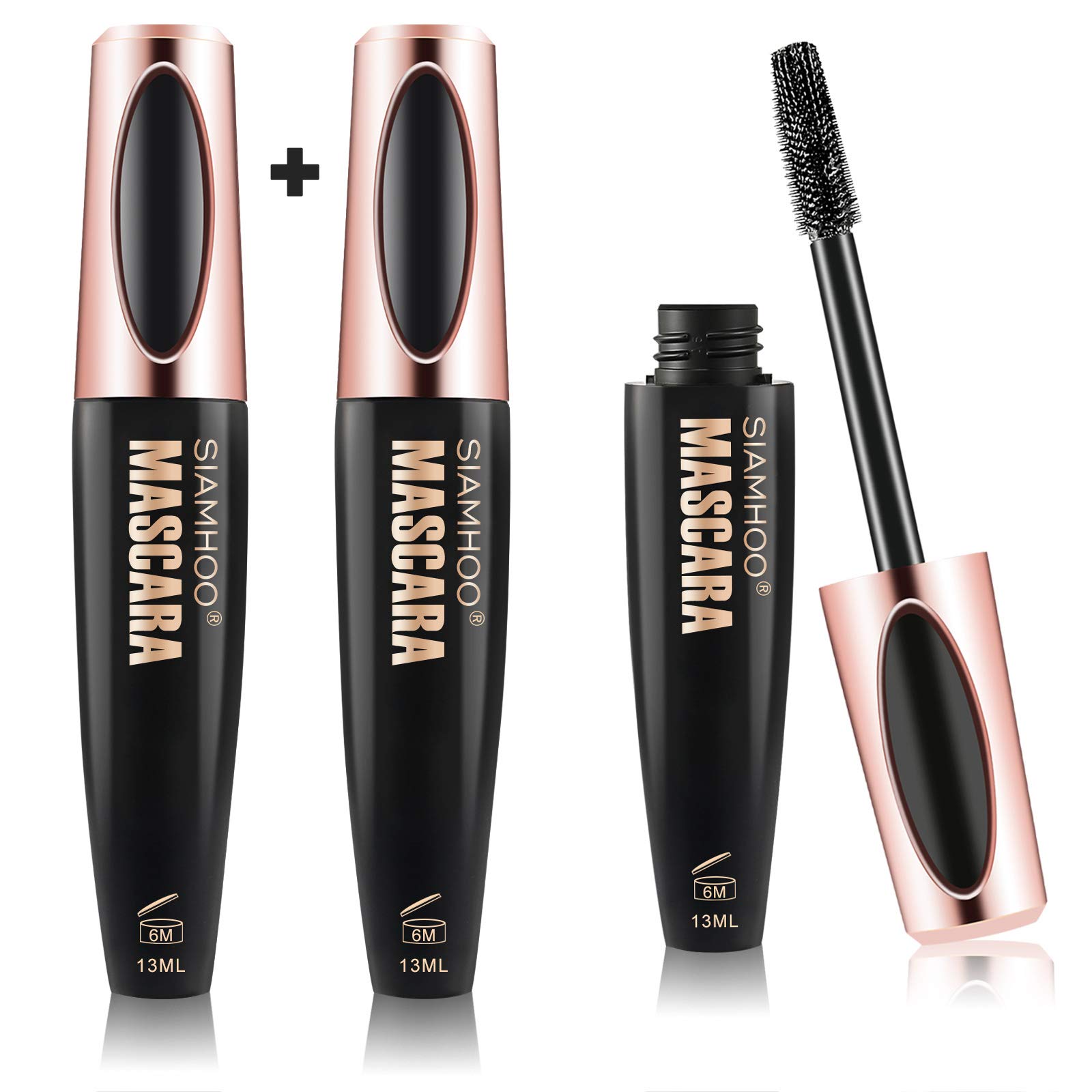 SIAMHOO 4D Silk Fiber Lash Mascara Smudge-Proof Waterproof Mascara Long Lasting Hypoallergenic Voluminous Mascara Black Volume and Length 2PCS classic black-2pc