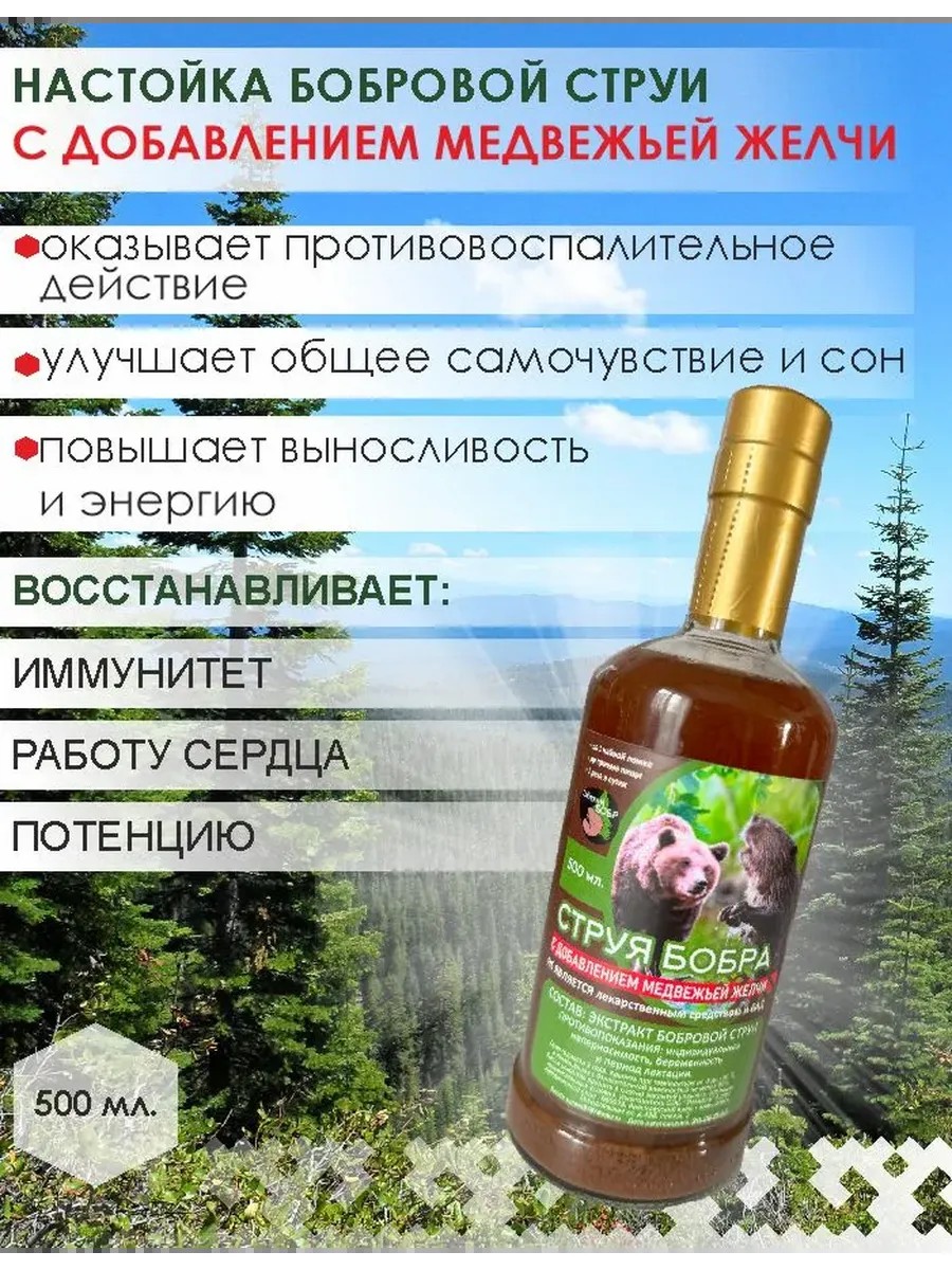 Сибирский бобр Струя бобра настойка с добавлением медвежьей желчи 500 мл