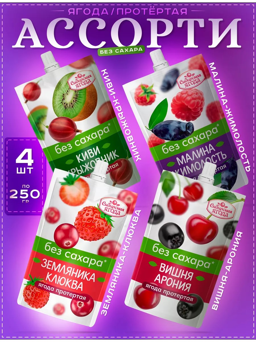 Сибирская ягода Протертые ягоды Ассорти набор без сахара 4шт.