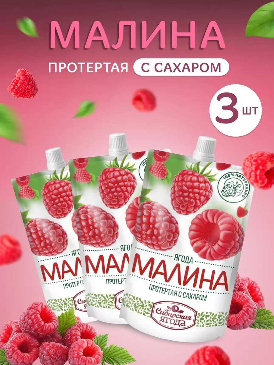 | Комплектация | Протертая малина с сахаром 280 г -3 шт |
