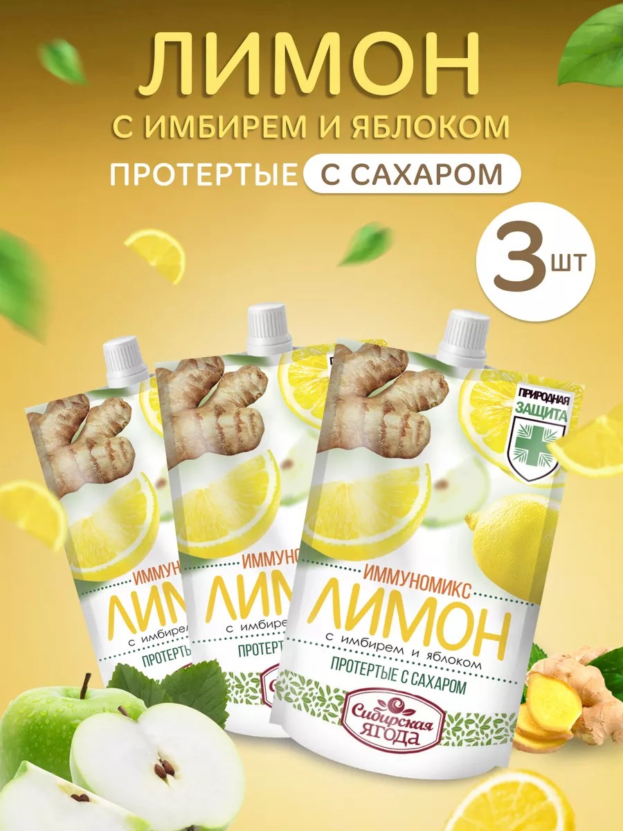 Лимон с имбирем и яблоком протертые с сахаром набор 3 шт