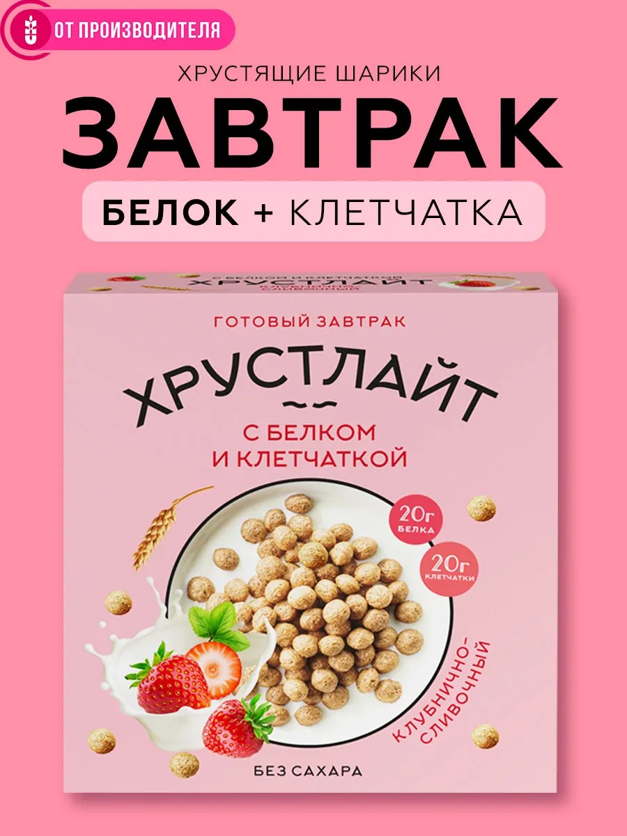 Начните свой день с хрустящей радости и пользы вместе с готовым завтраком Хрустлайт клубника со сливками от Сибирской клетчатки! Эти вкусные хрустящие шарики станут отличным выбором для тех, кто ценит здоровое питание и не хочет жертвовать вкусом. Натуральный состав без сахара с высоким содержанием белка (20 г/100г) сделает ваш завтрак не только вкусным, но и сытным, заряжая энергией на весь день. Хрустлайт – это идеальный вариант для тех, кто следит за фигурой, придерживается диетического питания или ищет полезные сладости для себя и своих детей. А вкус клубники со сливками подарит вам заряд бодрости и хорошего настроения с самого утра!