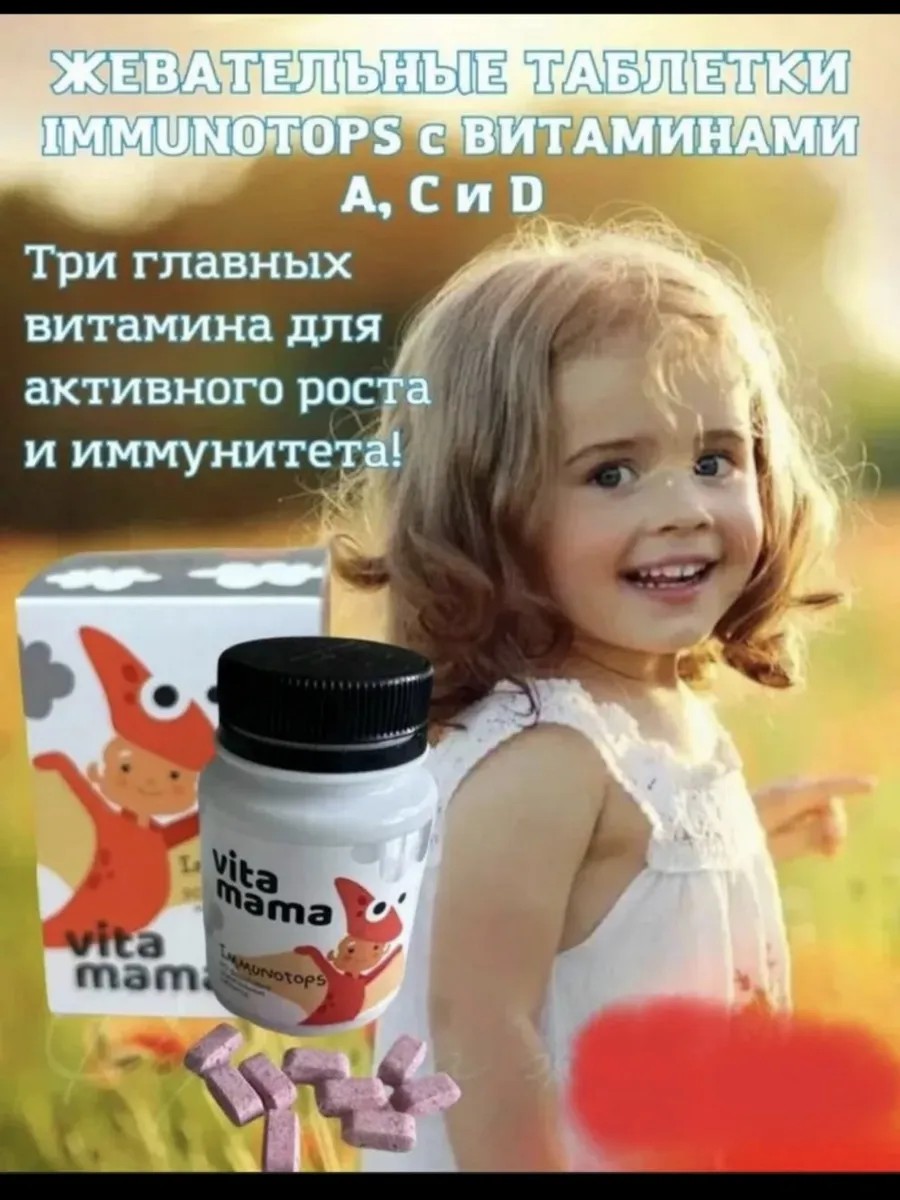 Детские фруктовые жевательные таблетки с витаминами A, C и D