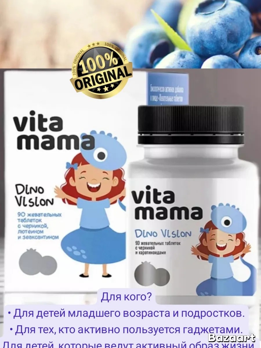 Не все дети готовы есть шпинат, перец и другие яркие овощи, которые так важны для зрения. Мы создаем БАД в форме десертов, чтобы каждый ребенок получил свою порцию полезных компонентов, наслаждаясь приятным вкусом! А благодаря умным дозировками жевательные таблетки подходят не только детям, но и взрослым. Dino Vision серии Vitamama – это удобное решение для регулярного использования всей семьей.