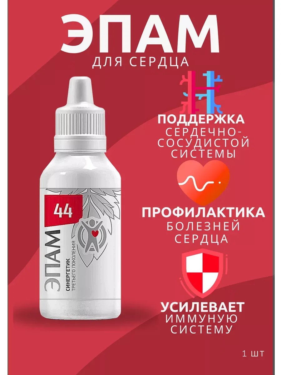 ЭПАМ 44 — источник активных веществ, которые способствуют поддержке сердечно-сосудистой системы и оказывают общеукрепляющее действие на организм. В состав вошли натуральные компоненты, которые используют при профилактике болезней сердца и гипертонии. Они способствуют нормализации артериального давления и снижению уровня холестерина в крови.