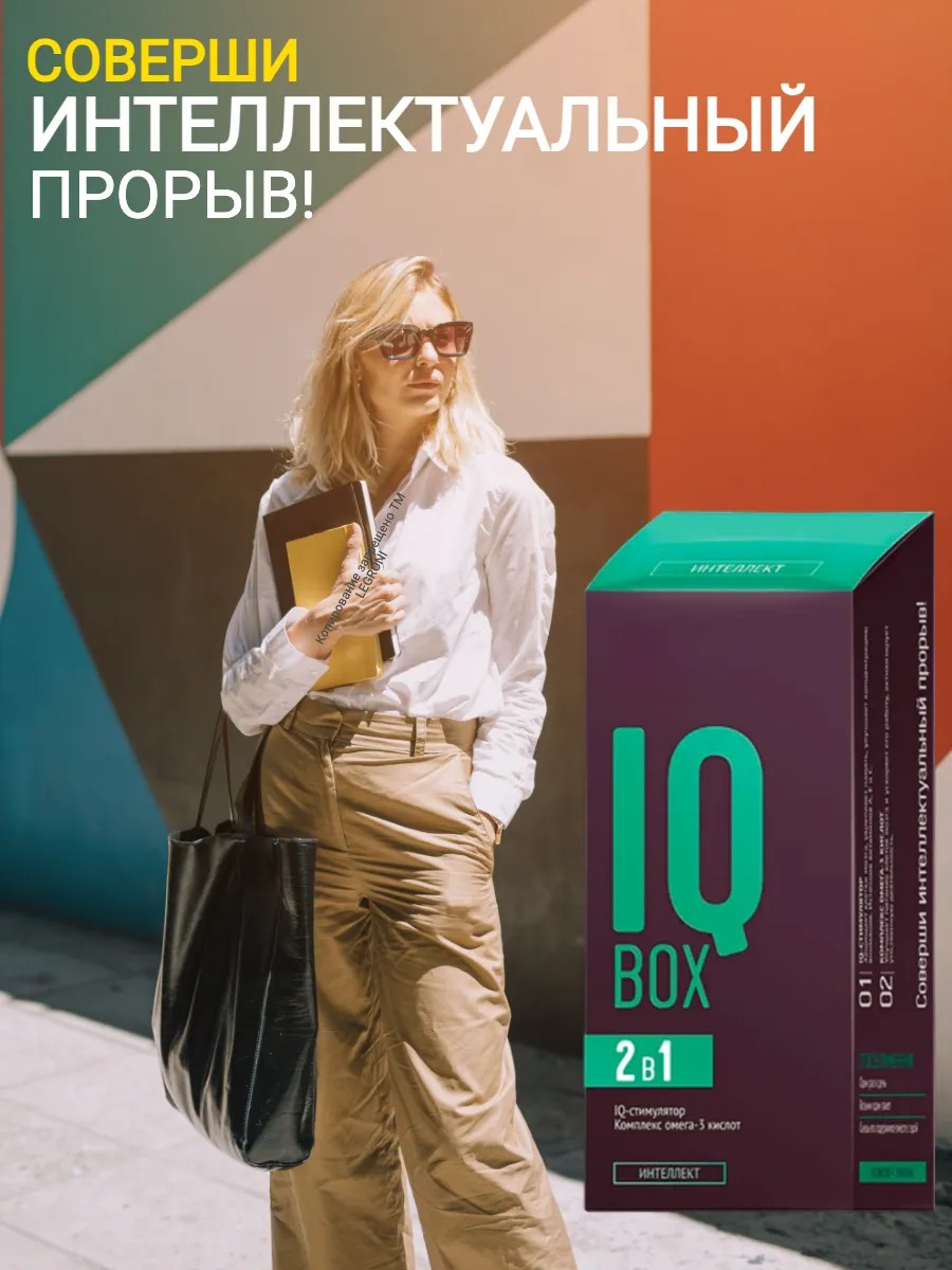 Соверши интеллектуальный прорыв!ВСЕГО ПЯТЬ СЕКУНД В ДЕНЬ ПОМОГУТ СОХРАНИТЬ КРЕПКУЮ ПАМЯТЬ И УСИЛЯТ КОНЦЕНТРАЦИЮ ВНИМАНИЯ.Тебе нужен особый бустер для поддержаниявысокой интеллектуальной активности – IQ Box. Крепкая память, концентрация внимания Нейропротекторный комплекс с экстрактами гинкго билоба и байкальского шлемника улучшает мозговое кровообращение, способствуя активизации мыслительных процессов, нормализации эмоционального фона и укреплению памяти [1, 2]. Защита клеток мозга Витамины А, Е и С оказывают мощное антиоксидантное действие и защищают клетки мозга от окислительных процессов [4] – нейроны работают максимально продуктивно, без риска повреждений.Питание клеток мозга и ускорение его работы Комплекс омега-3 кислот способствует нормализации работы нервной и зрительной систем, питает клетки мозга и ускоряет его работу, улучшая передачу нервных импульсов между нейронами. (сибирское здоровье) IQ BOX ПОМОГАЕТсохранить острый ум и крепкую память! Способ применения:1месяц Один пакет раз в день во время еды. Противопоказания: Индивидуальная непереносимость компонентов продукта.