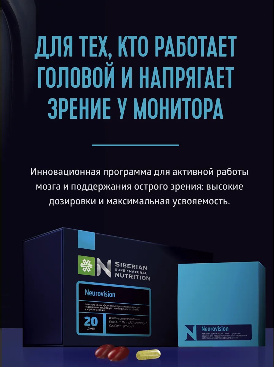 | Торговое наименование | Биологически активная добавка к пище "Siberian Super Natural Nutrition. Нейровижн (NeuroVision)" |