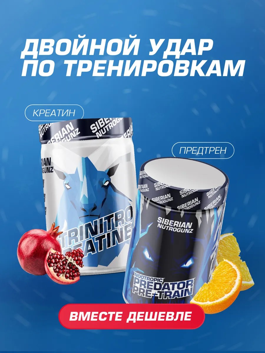Набор "PREDATOR PRE-TRAIN + TRINITRO CREATINE" от Siberian Nutrogunz предназначен для тех, кто хочет улучшить свои спортивные результаты и достичь новых вершин.