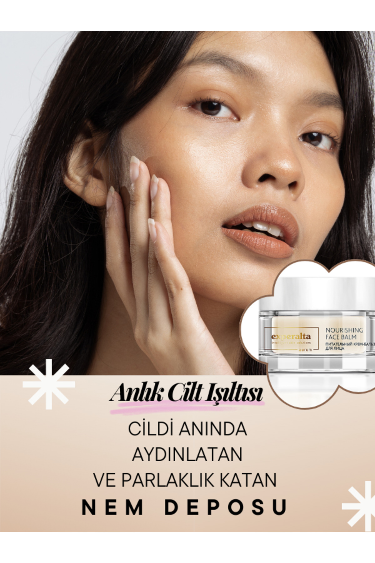Zerdeçal ekstresi, ari sütü, degerli yaglar, Altay bali ve propolis içeren dogal formül cildi besler ve hidrolipid tabakasini onararak erken yaslanmayi önler. Rahatlik hissi verir, kurulugu giderir, cilt rengini iyilestirir. Nem Deposudur.