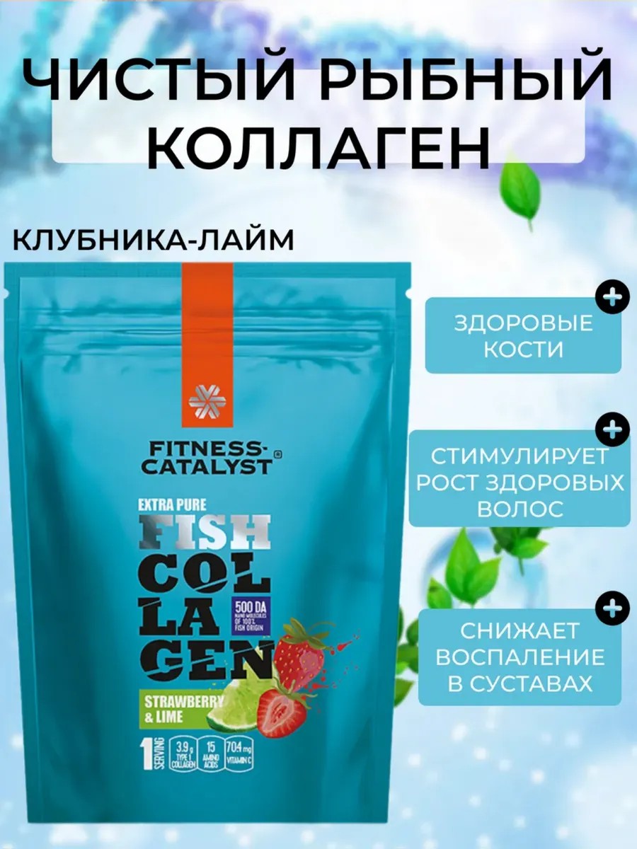 Чистый рыбный коллаген с ароматом клубники и лайма от Fitness Catalyst - это продукт, который содержит высококачественный коллаген, полученный из рыбьего источника. Коллаген является основным белком, составляющим кожу, суставы, волосы, ногти и другие ткани организма. Добавление аромата клубники и лайма делает прием коллагена более приятным и вкусным. Это может стимулировать употребление продукта и облегчить его включение в ежедневный рацион. Коллаген является важным компонентом для поддержания здоровья кожи, укрепления суставов, улучшения состояния волос и ногтей. Регулярное употребление коллагена может способствовать уменьшению морщин, повышению упругости кожи, снижению болевых ощущений в суставах и укреплению ногтей. Fitness Catalyst предлагает чистый рыбный коллаген без лишних добавок, что делает его естественным и полезным для здоровья. При необходимости следует проконсультироваться с врачом или специалистом по питанию перед началом приема коллагена, особенно если у вас есть какие-либо аллергии или медицинские противопоказания. Состав Пептиды рыбного коллагена, порошок фруктово-ягодный: апельсин, ароматизатор пищевой натуральный «Клубника», L-аскорбат натрия, яблочная кислота (регулятор кислотности), экстракт стевии, порошок сока красной свеклы, ароматизатор пищевой натуральный «Лимон-лайм», экстракт ацеролы. Применение Две мерные ложки размешать в 150 мл воды, фруктового сока или любимого напитка. Употреблять один раз в день во время еды. Длительность курса: • Для поддержания красоты – 1 месяц. • При повышенных физических нагрузках – 3 месяца. Эффект сохраняется в течение 4 недель*. • Для настоящих биохакеров** – регулярное применение без перерывов.