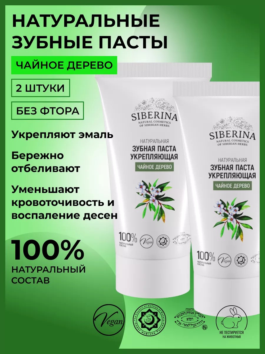 Натуральная зубная паста «Чайное дерево» обеспечит комплексный уход за полостью рта и обладает мощным антибактериальным эффектом. Она эффективно очищает налет, не травмируя эмаль, убирает неприятный запах изо рта, гарантирует свежесть дыхания в течение дня и оказывает легкое отбеливающее действие.