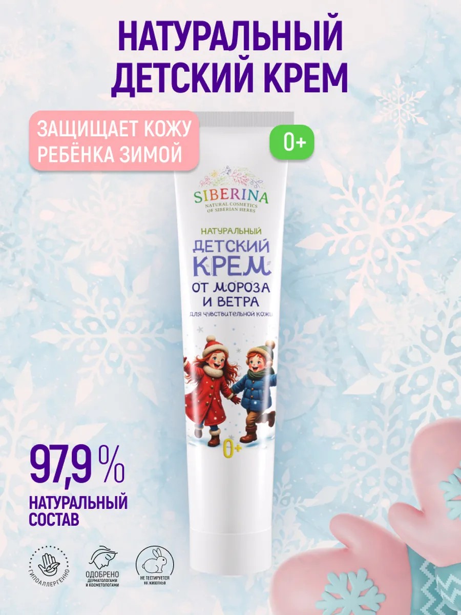 Детский крем от мороза и ветра станет надежным помощником в зимний период, обеспечивая бережный уход и защиту вашему ребенку. Увлажняющее средство работает против сухости и шелушения. Гипоаллергенный состав крема рекомендуется для чувствительной, сухой и раздраженной кожи вашего малыша, как для лица, так и для рук. Подходит для ежедневного использования и может применяться как перед выходом на улицу, так и после прогулки. Легко наносится и быстро впитывается, не оставляя жирной пленки.