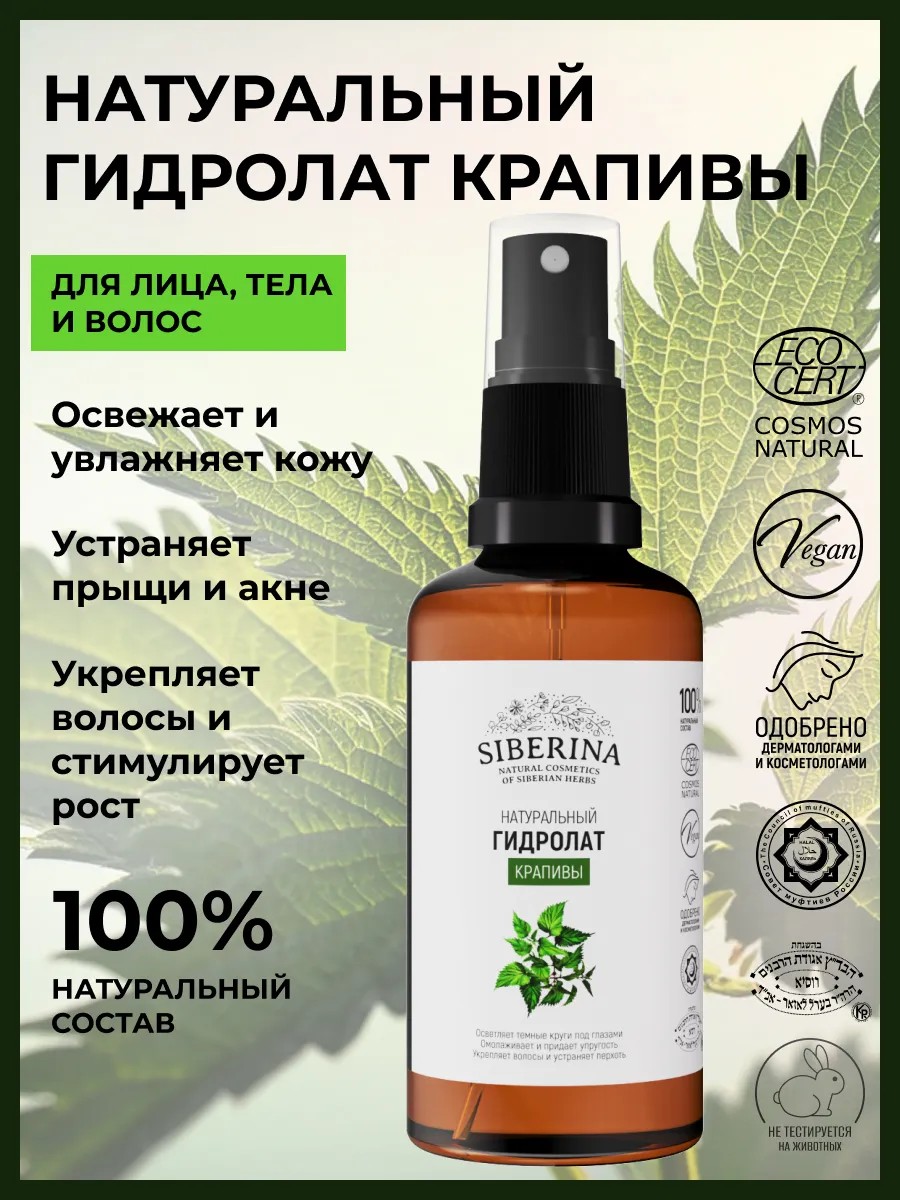 Натуральный гидролат крапивы укрепляющий — это уникальное уходовое средство, которое идеально подходит для ухода за кожей лица и волосами. Этот продукт обладает полностью натуральным составом, что подтверждено сертификатом COSMOS NATURAL, одним из самых строгих стандартов в мире органической косметики. Гидролат крапивы действует как витаминный тоник, обеспечивая коже и волосам необходимый уход. Для волос гидролат крапивы является настоящим спасением: он укрепляет волосы и способствует их росту, придавая им блеск. Это средство рекомендуется использовать при перхоти (себорее) и подходит для любого типа волос. Благодаря своим свойствам оно помогает поддерживать здоровье кожи головы. Что касается ухода за кожей лица, гидролат крапивы отлично справляется с задачами увлажнения и тонизирования кожи. Он оказывает антиоксидантное действие и помогает бороться с признаками старения кожи. Средство эффективно снимает раздражения, выравнивает тон кожи и уменьшает темные круги под глазами. Оно также очищает кожу от прыщей и черных точек, сужая поры. Гидролат можно использовать в чистом виде как тоник или добавлять в домашние косметические средства для усиления их эффекта. Он также служит основой для антицеллюлитных обертываний или может быть использован в виде компрессов при лечении акне. Важно помнить о противопоказаниях: не рекомендуется употребление людям с тромбофлебитом или атеросклерозом; противопоказан при варикозном расширении вен или заболеваниях почек. Храните продукт в тёмном месте при температуре ниже +17°C; повышение температуры сокращает срок годности средства.