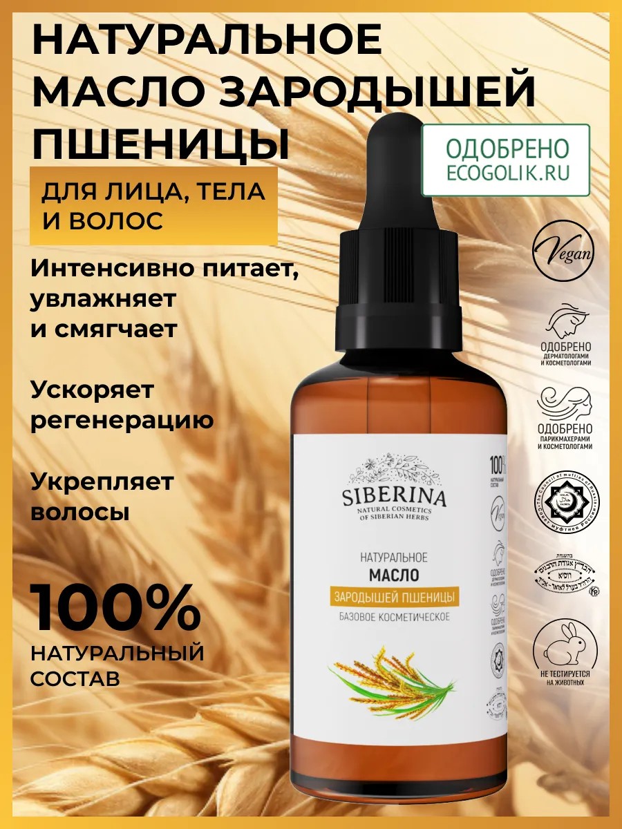 Natural wheat germ oil for body and hair is a versatile product that will become an indispensable aid in skin and hair care. This refined cosmetic wheat germ oil has a rich composition, including vitamin E and polyunsaturated fats, making it ideal for nourishing the skin. It is suitable for both dry, oily, and combination skin, providing hydration and wrinkle protection. The oil is effective against dry skin, itching, and flaking. Thanks to its hypoallergenic properties, it can even be used on delicate baby skin. The convenient dropper bottle allows for easy application to the skin or hair. For women, this oil will be a true salvation from hair loss and split ends. Regular use promotes accelerated hair growth, adding volume and shine. The oil is also ideal for body massage, relaxing the back muscles and the entire body. Wheat germ oil can also be used in nail care: it prolongs the effect of a manicure or pedicure by moisturizing the cuticle and strengthening the nail plate. This natural remedy is also used as a rejuvenating facial massage oil with a lifting effect or as a preventative against acne breakouts and inflammation. Treat yourself to the luxury of pampering with this oil! It makes a wonderful gift for any occasion: whether it's March 8th or a birthday – every woman will appreciate such a gift. Storage conditions: Store at temperatures between +5 and +25°C, avoid exposure to sunlight.