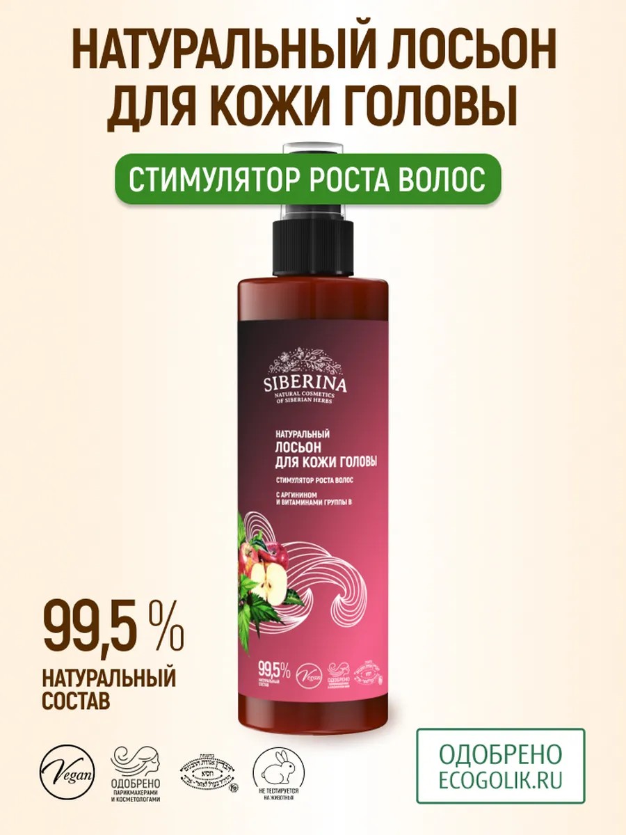 Натуральный лосьон для волос укрепляющий — это идеальное средство для ухода за кожей головы и предотвращения выпадения волос. Этот лосьон способствует восстановлению и питанию, стимулируя рост новых волос благодаря улучшению обменных процессов в волосяной луковице. Волосы становятся более прочными и густыми, а сам лосьон быстро высыхает, не утяжеляя их. Подходит для всех типов волос, обеспечивая натуральный уход. Экстракт крапивы насыщает волосы витаминами и способствует их росту, выступая как природный антистатик. Яблочная кислота улучшает обменные процессы в коже головы, укрепляя волосы и придавая им гладкость. L-аргинин усиливает кровоснабжение волосяных луковиц, что помогает против выпадения волос. Витамин В6 сокращает выпадение и делает волосы сильными по всей длине. Витамин В3 ускоряет обновление клеток кожи головы, успокаивая её раздражение. Д-пантенол (провитамин В5) восстанавливает поврежденные участки волоса от корней до кончиков. Витамины B7 и аллантоин нормализуют работу сальных желез, благодаря чему волосы дольше остаются чистыми. Способ применения: чистые влажные волосы разделите на несколько зон, затем нанесите лосьон на кожу головы и помассируйте. Не требует смывания. Подходит для ежедневного применения.