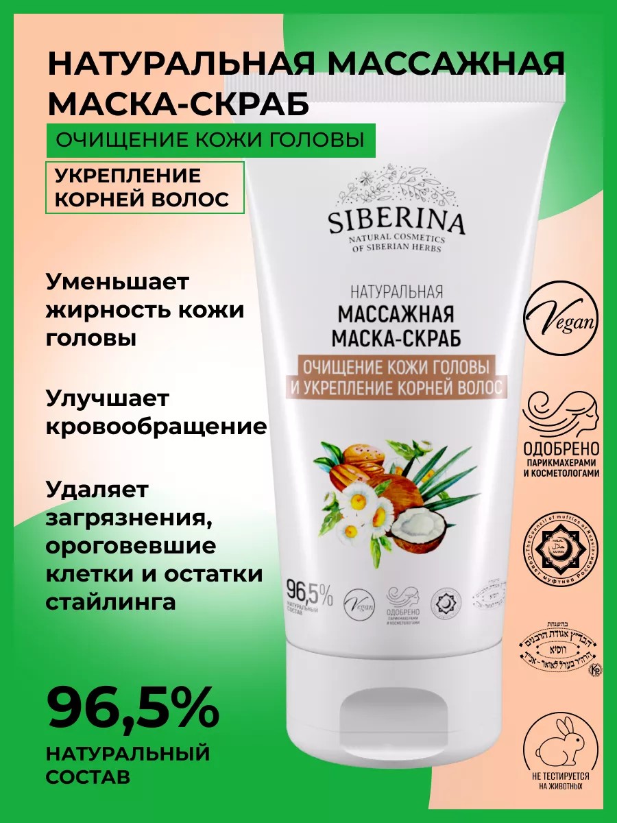 Натуральная массажная маска-скраб "Очищение кожи головы и укрепление корней волос", 150 мл.