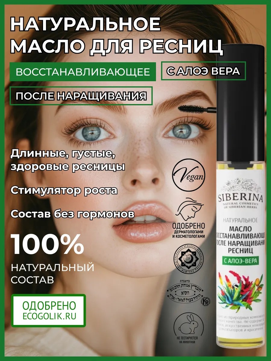 Натуральное восстанавливающее масло после наращивания ресниц с алоэ-вера, 10 мл.